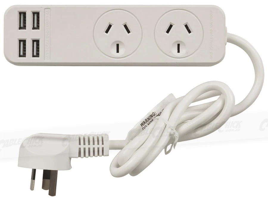 It features two GPO’s at 240v and 10 Amps plus 4x USB-A ports with a combined 3.4 Amps of charging power. A 900mm cable round out this perfecly sized and well proportioned little powerboard.