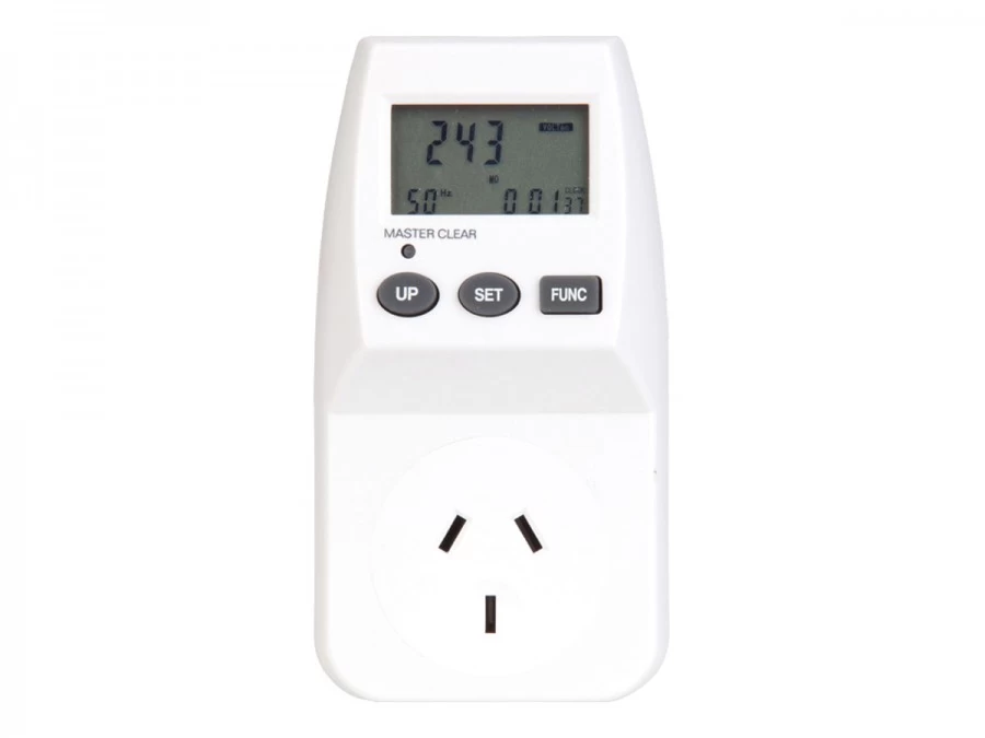 This handy Australian Mains 240v Power Cost Monitor is a testing instrument you can use to determine the power consumption and running cost of an appliance or group of appliances in real-time. It can be easily programmed with your actual kilowatt-hour energy price, and give you running and cumulative tallies of cost over time.