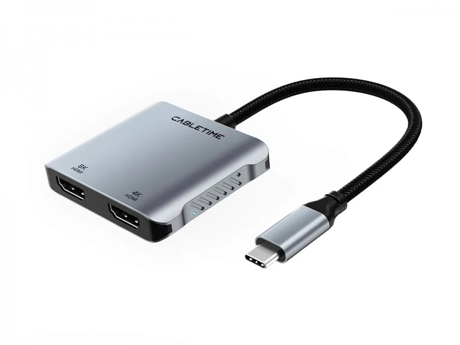 This USB C to Dual HDMI Adapter allows you to connect up to two 4K displays to a single, yes you heard me, a single USB C port on your laptop! And we’re not talking about only mirroring the same signal to both displays, we’re talking about extended desktop mode as well! Not only is this sleek little adapter capable of running dual displays at 4K60hz but with a single monitor attached, it has the capability to output an 8K30hz signal. At 4 times the resolution of HD, that’s a lot of power!