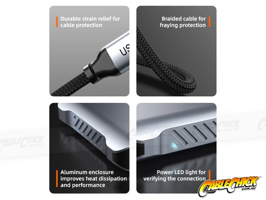 Usually when something is this handy and practical, it’s going to be lacking in the looks department, function over fashion as it were. But that’s not the case here! Housed in a premium space grey aluminium shell for superior heat dissipation and performance and attached to highly durable braided cable with added strain relief, this 4-in-1 USB C to Dual HDMI Adapter is made to last, perform and look good while doing it.