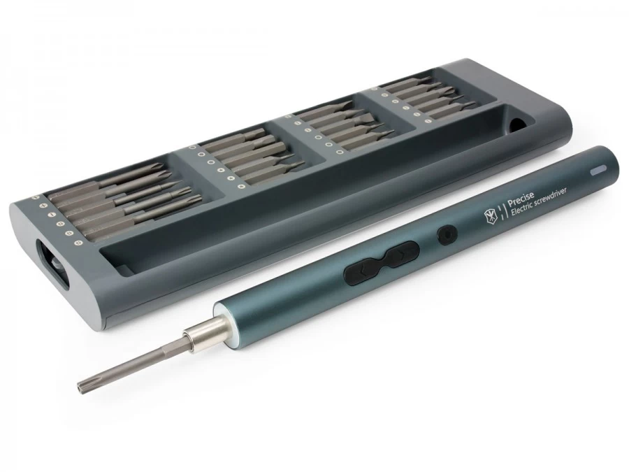 It features a gorgeous blue/green anodised driver with magnetic head and 48 high-strength precision bits (listed below) all fitting in a stylish anodised sleeve. The driver features a high torque (for its size) battery powered motor with forward and back buttons as well as a neat button to turn on the LEDs for a bit more light on the situation. The electric screwdriver won’t be helping you build a house anytime soon but you will get a few hundred screws in and out doing precision work on each charge. A 350mAh lithium ion battery powers everything and is charged by a USB-C cable (not included).