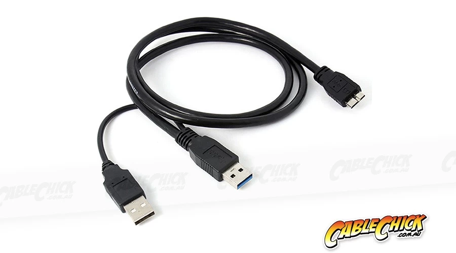 This cable works like a regular USB 3.0 data cable for your external HDD, with a Micro USB 10-Pin plug going to a standard USB 3.0 Type-A plug, only you get an extra USB Type-A plug to supply extra power from another port. How clever! This is especially handy for external hard drives and other high-power items which require additional power to run.