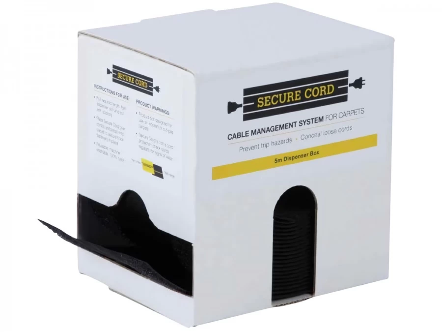 This 5m long highly durable Carpet Cable Cover simply uses a velcro style hook-and-loop system to secure the cover to your carpeted floor. Suitable for any type of carpet and ideal for office space where running cables is necessary but also needs to be safe. Ideal for running 3-4 cables safely across carpeted areas where alternate routing methods may not be viable. It can also easily be cut into smaller lengths for a neat finish.