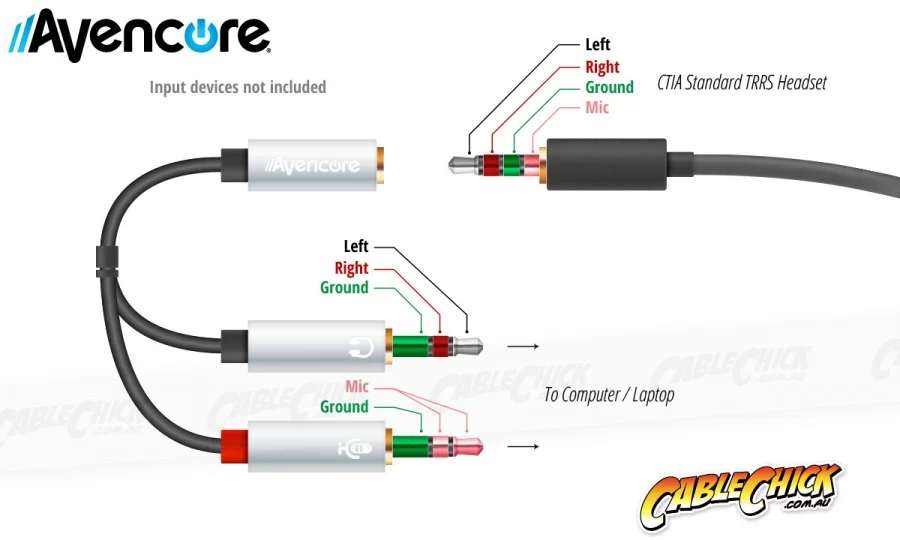- 3.5mm TRRS combination socket to separate 3.5mm stereo and mic plugs