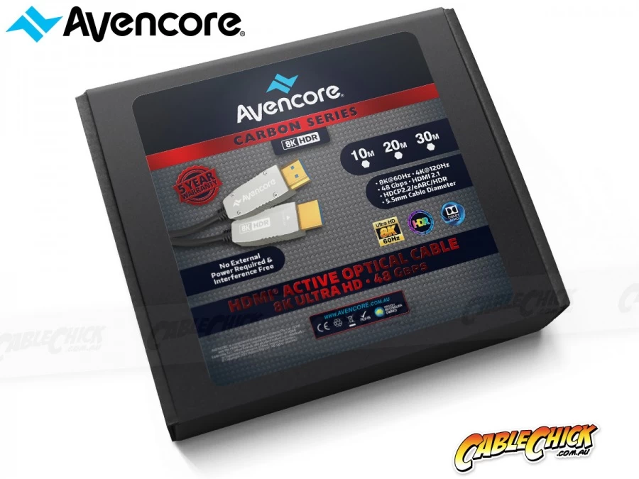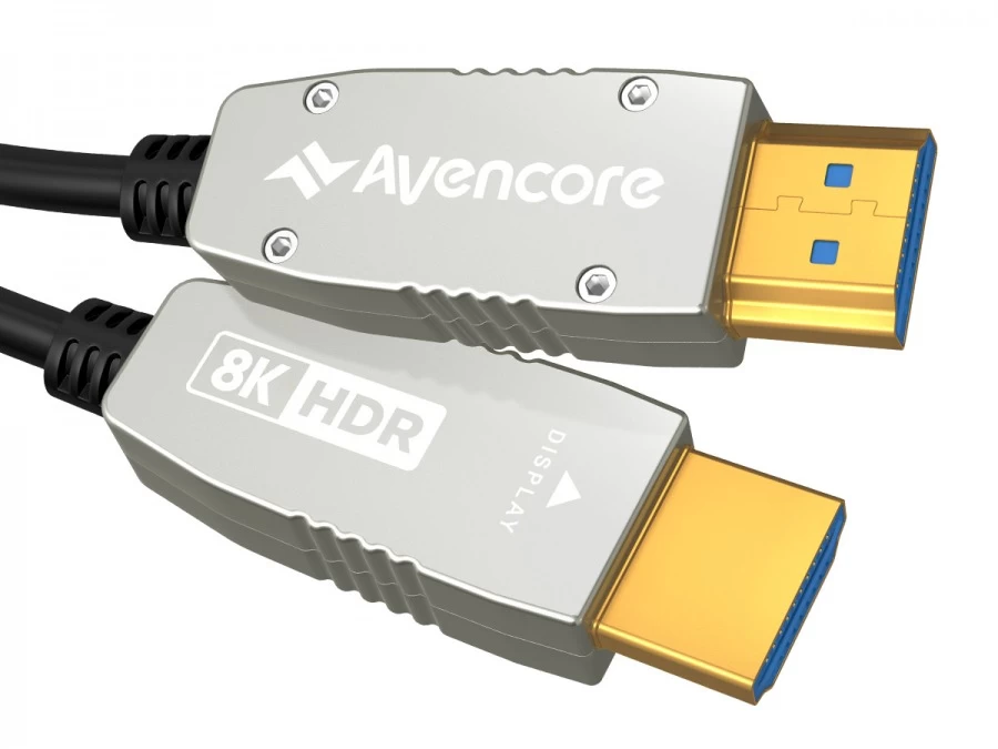 The Avencore Carbon Series HDMI Active Optical cable range is the ultimate in HDMI cable technology for the 8K era, and is targeted for use with 4K60 systems running HDR content, and for 8K gaming content as well as 4K and 1080p video content over longer distances than regular copper cables can achieve.