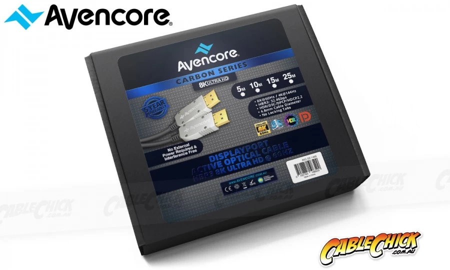 The Avencore Carbon Series DisplayPort Active Optical cable range is the ultimate in DP cable technology for the 4K era and beyond. If you’ve ever had to compromise on equipment placement due to limited cable lengths, the Avencore Carbon Series is the key to ultimate freedom without sacrificing picture quality.