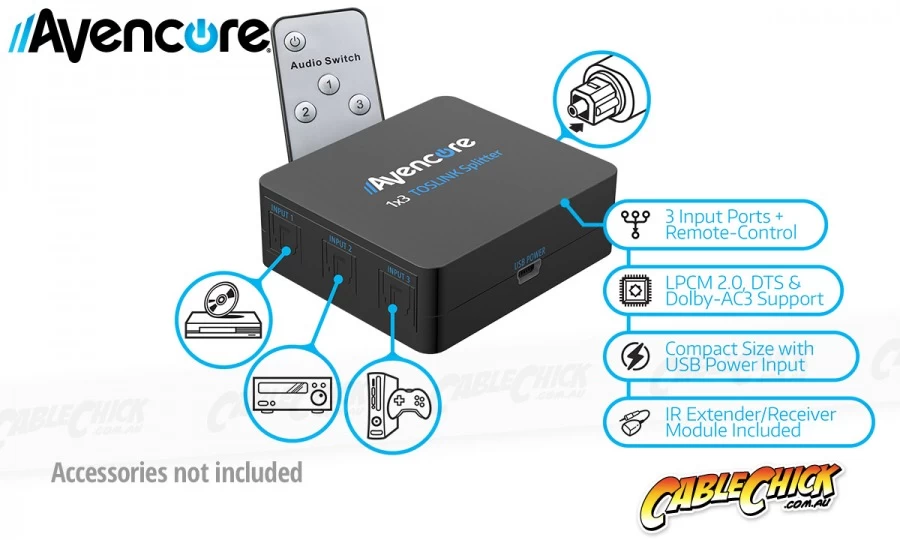 Best of all, this USB-powered switch will boost your optical signal, allowing for longer cable runs to be used. Just press the push-button on the switch to cycle through the connected inputs or use the included remote control. Compact, versatile and great for audio management in any home theatre!