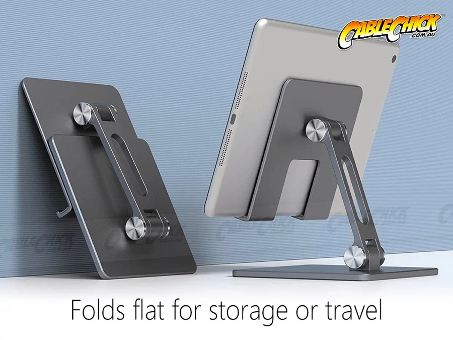 Finally the double-hinge design allows the stand to fold quite flat so you can include it in your laptop or travel bag, unlike most metal tablet stands. An essential desktop accessory, and suitable for all home and office use!