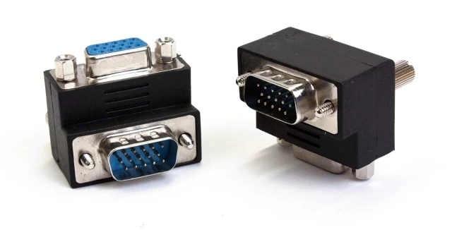 - VGA Male to VGA Female upwards facing right-angle adaptor