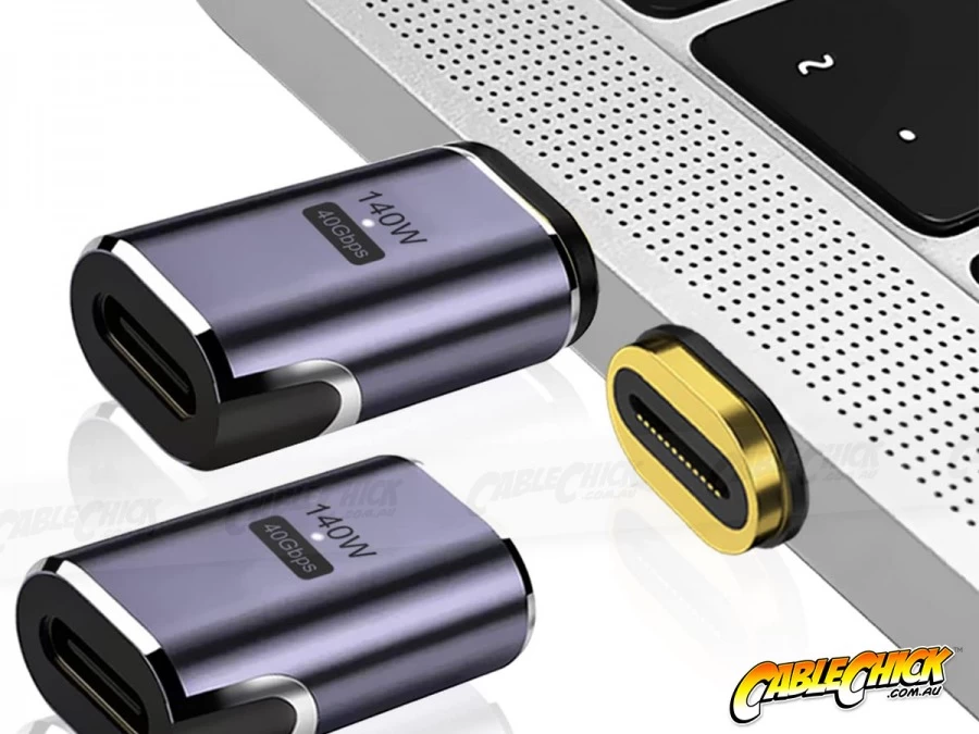 These USB4, 8K-60hz, 140w, 40Gbps magnetic USB-C adapters are perfect for turning ANY USB type C port into a Mag-Safe Port. That’s right, just plug the gold plated magnetic USB-C male connector into your laptop’s USB-C female port to protect it from bumps, knocks and accidental cable yanking.